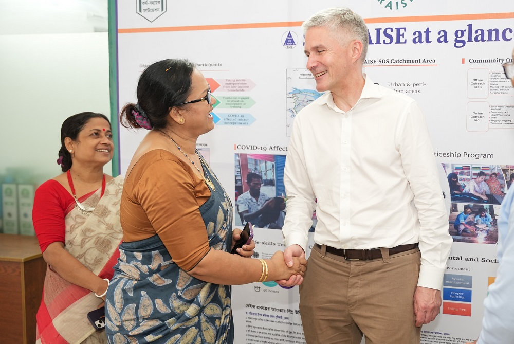 In this context, PKSF undertook the ‘Recovery and Advancement of Informal Sector Employment (RAISE)’ Project in February 2022 jointly financed by the World Bank and PKSF. The RAISE project will facilitate employability and increase productivity of informal sector, and provide financial assistance to 175,000 low-income youths, micro-entrepreneur and COVID-19 affected micro-entrepreneurs in urban and peri-urban areas across the country. PKSF will implement the project through its 70 POs. In addition to this, the RAISE project has another component on recovery and reintegration of COVID-affected returnee migrants which will be implemented by the Wage Earners’ Welfare Board (WEWB) under the Ministry of Expatriates’ Welfare & Overseas Employment. SDS stared partnership with PKSF since July 2022 for RAISE Project as Implementing RAISE activities.