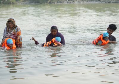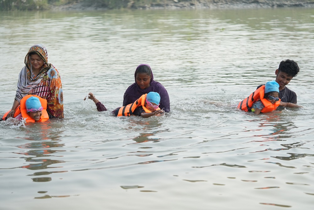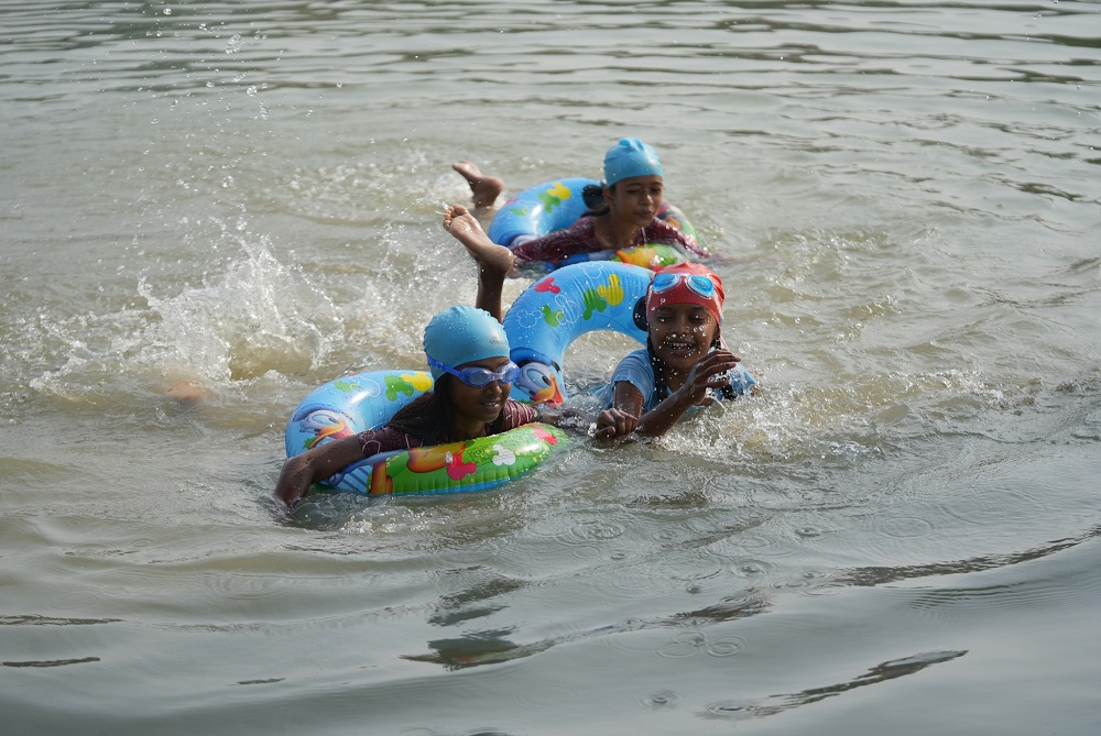 The YES4ECO project, implemented by SDS in partnership with EDUCO, has provided swimming and water safety lessons to ninety children aged 5-12 in three villages at Shariatpur. With promising results, the project is set to expand to benefit more children.