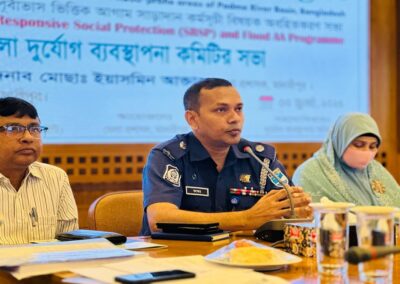The objective of the meeting was to strengthen the capacity of disaster management committees at the district, upazila, union, and ward levels, along with key government departments, in order to anticipate, prepare for, and respond effectively to recurrent riverine floods.